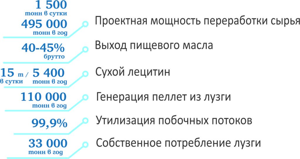 Завод интегрирован в единую производственную систему компании: от приёма сырья до выпуска готовой продукции. Здесь формируется сырьевой поток, который становится основой для производства конечных продуктов на Масложировом комбинате в Алматы.